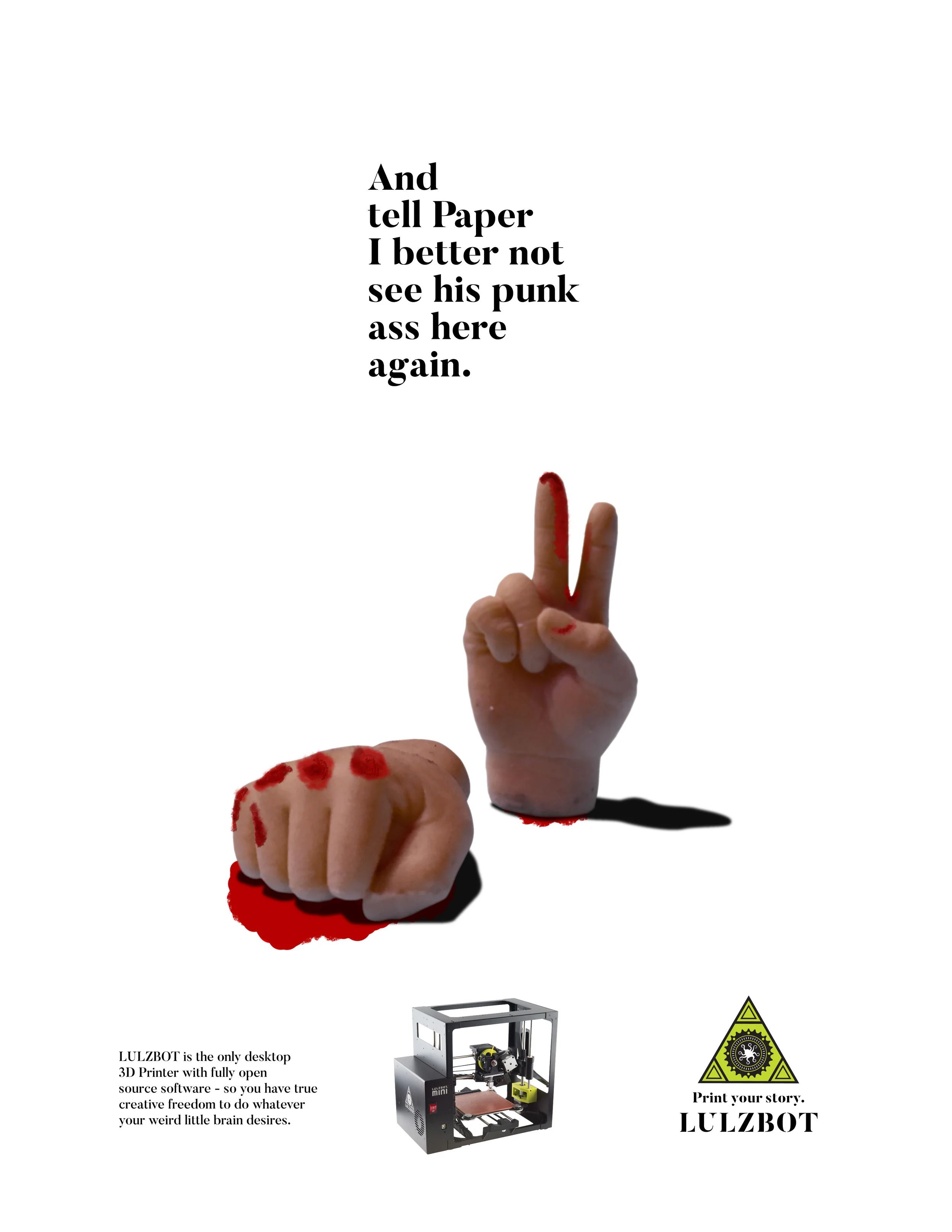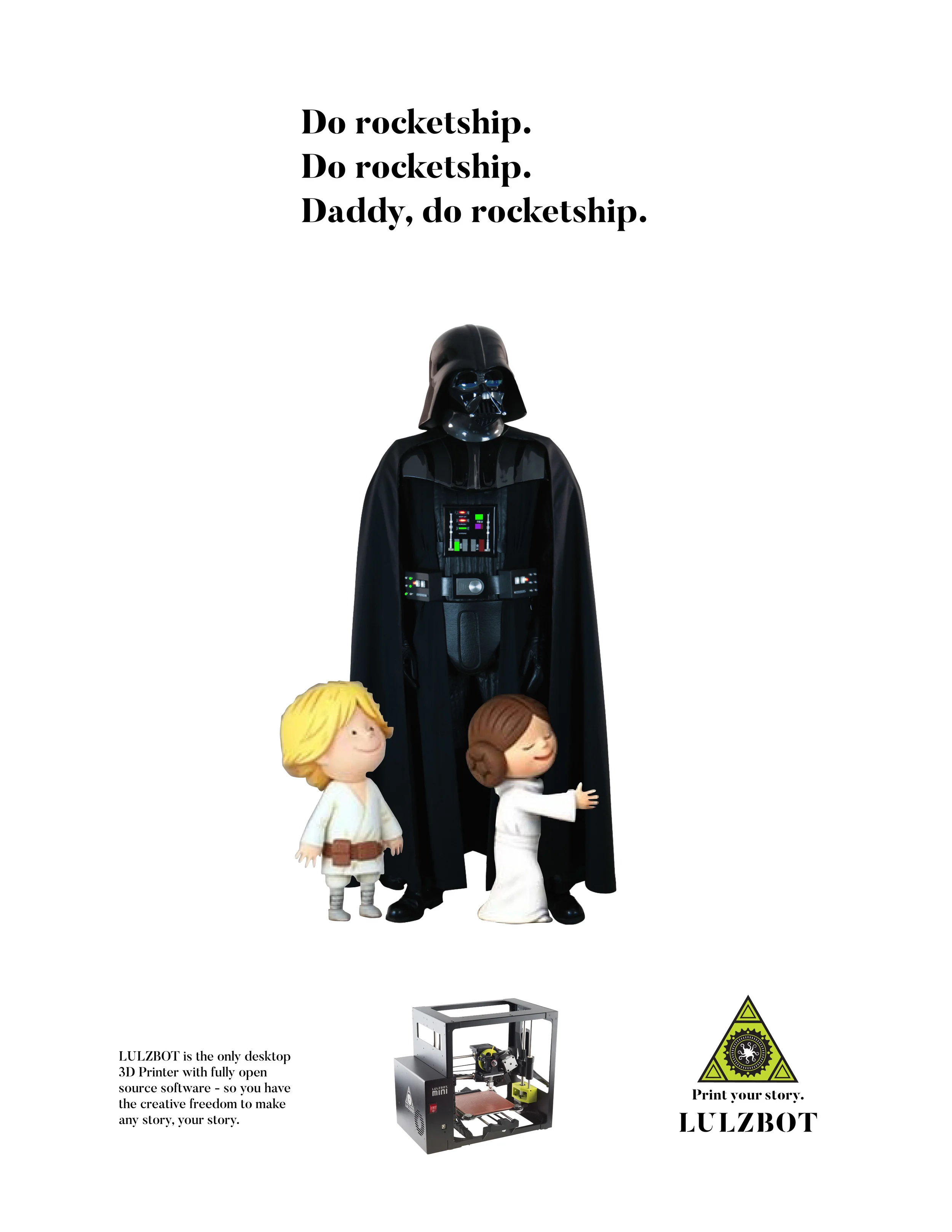 Lulzbot is the only desktop 3D printer with fully open source software - so you have the creative freedom to make any story, your story. Andrew Jones - AD, Matt Klugman - CW